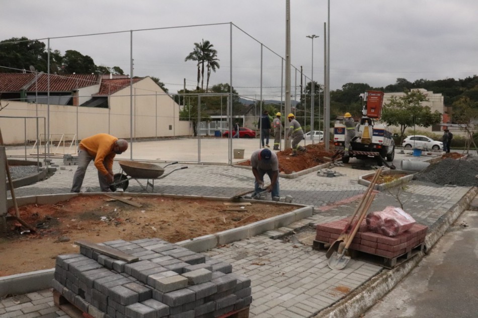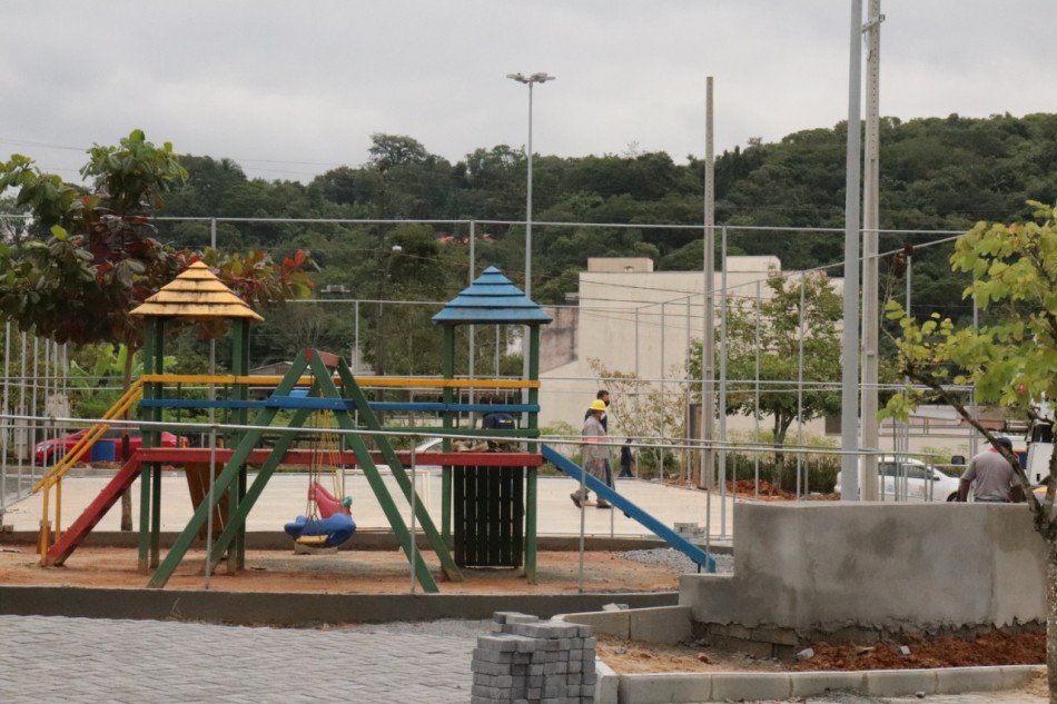 Praça Praça Renato Luiz Maba no Fidélis recebe acabamentos finais, enquanto áreas de lazer na Itoupavazinha e Itoupava Central estão em obras.