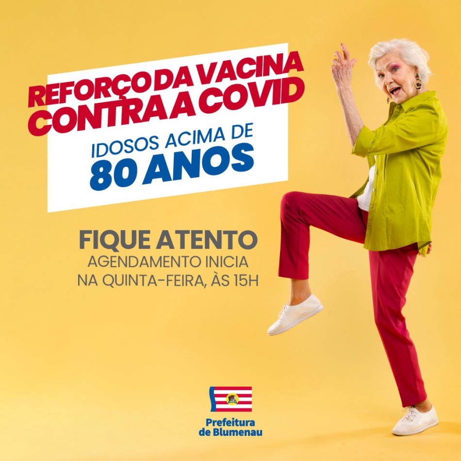 Na próxima quinta-feira, dia 16, a Prefeitura de Blumenau vai iniciar o agendamento da dose de reforço contra a Covid-19 para o público acima de 80 anos, que já recebeu a segunda dose ou dose única, independente da vacina há pelo menos seis meses. A agenda inicia às 15h e conta com 1.500 vagas para aplicação em dois dias. Na sexta-feira, dia 17, as vacinas serão aplicadas nos sete Ambulatórios Gerais, das 8h às 18h. Já no sábado, dia 18, os AGs Velha, Garcia e Itoupava estarão aplicando as vacinas, das 8h às 17h, mediante agendamento.