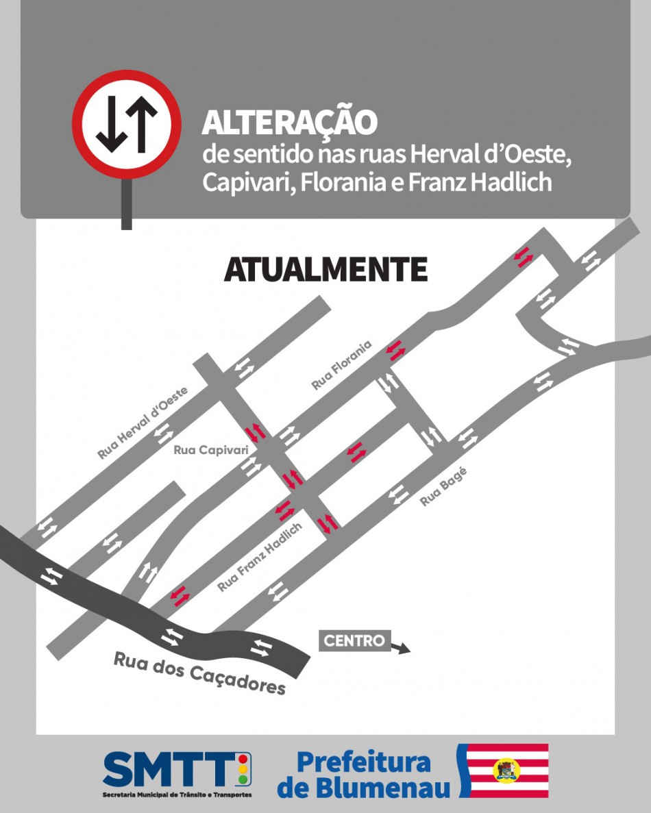 Uma das ruas que terá o sentido alterado será a Rua Franz Hadlich, que possui duplo sentido, passará a ter sentido único até a Rua Capivari.