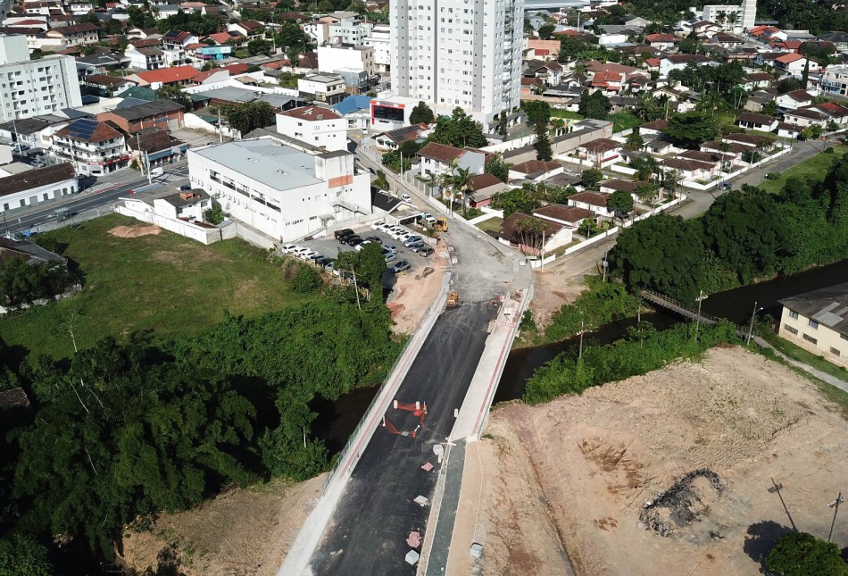 A ponte entre as ruas Anchieta e Paulo Scheidemantel recebe um investimento da Prefeitura de cerca de R$ 3,5 milhões, com recursos viabilizados por meio de uma emenda parlamentar, do ex-senador da República, Dalírio Beber, do Orçamento Geral da União (OGU).