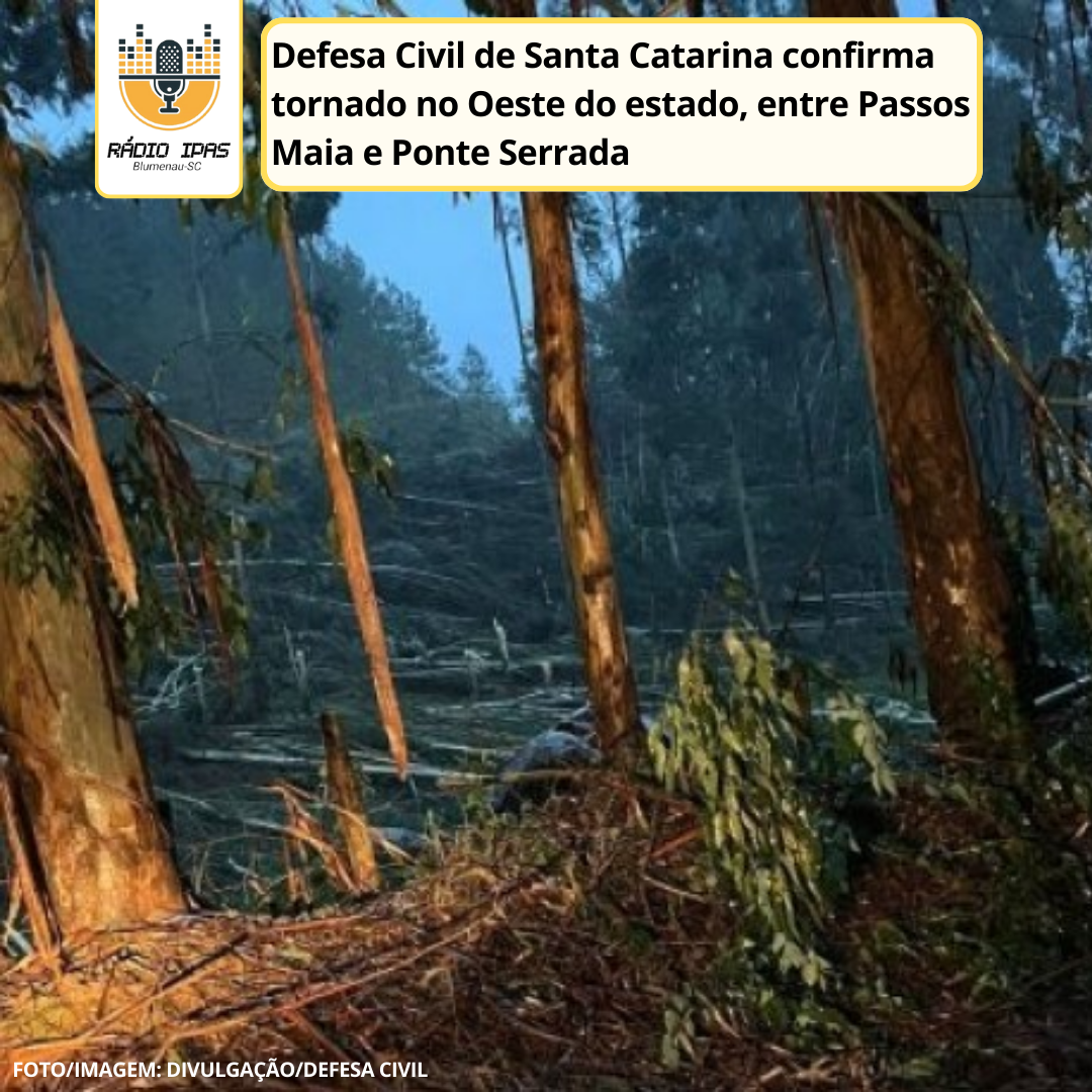 De acordo com Nota Meteorológica emitida pela Defesa Civil de Santa Catarina, um tornado foi registrado entre os municípios de Ponte Serrada e Passos Maia, no Oeste do estado, na tarde desta quinta-feira, 2. Os meteorologistas Francine Sacco e Fernando Rafael analisaram as imagens produzidas pelo radar de Chapecó. O tornado foi registrado em uma área de terra próximo à SC-350. Não há registro de feridos.
