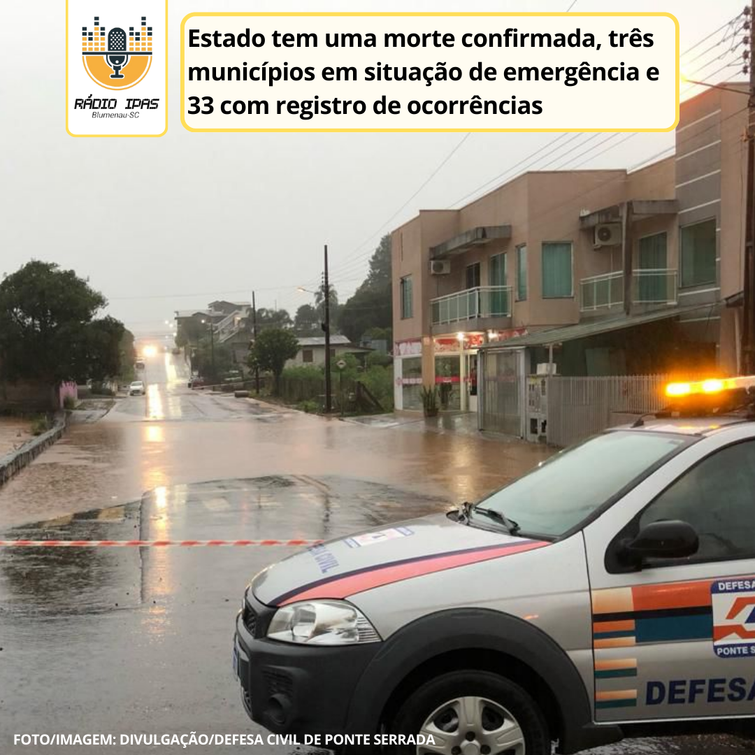 Segundo o Relatório emitido pela Secretaria da Proteção e Defesa Civil de Santa Catarina (SDC), na manhã desta sexta-feira, 3, o estado tem uma morte confirmada, em Ipira, em decorrência das fortes chuvas. Há registro de uma pessoa ferida, em Caçador. Pelo menos 155 pessoas estão desalojadas e 26 desabrigadas. Os municípios de Araranguá, Praia Grande e São João do Sul decretaram situação de emergência e até o momento, 33 municípios registraram ocorrências. Equipes do Governo do Estado seguem trabalhando de maneira integrada para prestar a assistência necessária à população atingida.