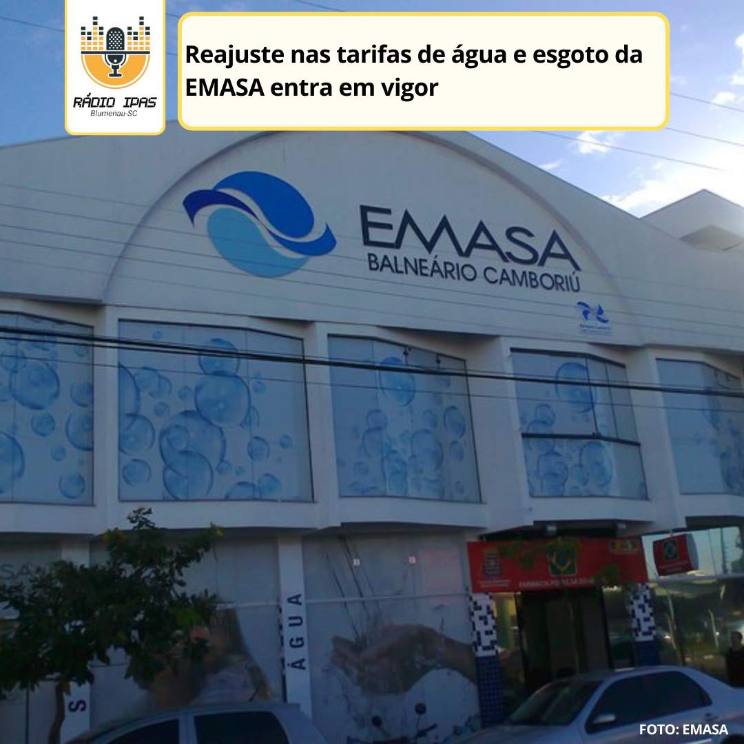 A Empresa Municipal de Água e Saneamento de Balneário Camboriú (EMASA) comunica à população que, a partir deste dia 6 de janeiro, entra em vigor o reajuste de 14,35% nas tarifas de água e esgoto. O aumento foi solicitado pela gestão anterior no dia 6 de outubro de 2024 e aprovado pela Agência de Regulação de Serviços Públicos de Santa Catarina (ARESC) em 6 de dezembro do mesmo ano.